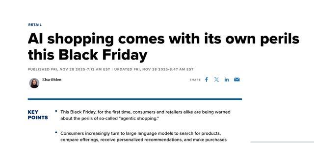 来源:环球网【环球网络科技综合报道】11月30日消息,据美国消费者新闻与商业频道(CNBC)报道,随着人工智能购物的兴起,消费者在享受个性化推荐和便捷购物体验的同时,也面临着数字欺诈风险日益增加的问题。在今年的“黑色星期五”之际,消费者和零售商首次被警告要警惕所谓“智能购物”带来的危险。如今,消费者开始依赖大型语言模型来搜索产品、比较价格、获得个性化推荐,甚至在几乎不需要人工参与的情况下完成购买。然而,这些技术进步也带来了新的风险。致力于预防欺诈的身份情报公司 Forter 的首席执行官迈克尔·雷特布拉特 (Michael Reitblat) 表示:“这确实让我的生活变得更轻松……但与此同时,它也让欺诈者更容易得逞。”根据ReitBlat显示,过去六个月通过AI代理完成购买的消费者数量增加了200%。与此同时,利用人工智能实施诈骗的犯罪数量增加了近十倍。他在接受 CNBC 节目“Squawk Box Europe”采访时解释道:“你可以将其视为向不同商店发送数千个机器人,假装成普通购物者。” Reitblat指出,即使一些零售商的第一反应是彻底禁止人工智能购物,但这也可能不是一个好主意,因为更多使用人工智能的购物者实际上为平台带来了高质量的流量。麦肯锡公司和《时尚评论商业》联合发布的一份报告显示,在时尚行业高管看来,人工智能和数字工具是该领域2026年之前最大的机会。报告强调,为了确保产品能够被人工智能模型识别和推荐,品牌必须重新思考其营销和电子商务策略,添加可通过 API 访问的语义丰富的数据和内容,这对成功至关重要。 “我们必须以人工智能对抗人工智能,”雷特布拉特强调。 “你必须确保你使用的数据比欺诈者拥有的更好,同时仔细思考:如何验证消费者的身份?”消费者关注成本效益是dapand今年零售商面临的另一大挑战。贸易紧张局势加剧以及对经济放缓的担忧正在改变人们的消费习惯。随着购物季的临近,消费者信心持续低迷。欧盟委员会数据显示,自2022年中期以来,欧洲经济景气指数一直低于长期平均水平。与此同时,由于对就业保障的担忧加剧,美国消费者信心在11月跌至4月以来的最低点。有专家指出,目前“K型经济”模式正在形成:高收入消费者仍拥有强劲消费能力r,而其他消费者在价格压力下被迫减少支出。 Currys 首席服务官迪恩·克莱默 (Dean Kramer) 表示:“消费者信心不稳定,因此今年让购物者感受到‘物有所值’将至关重要。” “我们知道购物者会在黑色星期五期间进行大量研究,以确保他们购买的商品非常划算。”(Bo Chan)