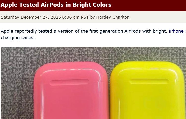 来源:环球网【环球网科技综合报道】12月28日消息,据外媒macrumors报道,知名苹果泄密者、原型收藏家Kosutami分享的一组照片,揭开了苹果未发布的彩色AirPods的神秘面纱。据报道,苹果已经测试了第一代 AirPods 的彩色版本。充电盒采用了粉色、黄色等鲜艳的色彩,风格与经典的iPhone 5c机型类似。从曝光的照片来看,这些AirPods原型机的充电盒外壳为粉色和黄色,而充电盒内部和耳机主体仍然保持了苹果一贯的白色设计。这样的配色非常符合iPhone 5c的经典色系。后者推出了蓝色、绿色、粉色、黄色等多种鲜艳的颜色,成为了很多苹果粉丝的童年记忆。外媒报道称,这并不是苹果第一次尝试打造MAirPods 的多种配色方案。早在2023年,业内就曝光了粉色AirPods的照片。当时的消息显示,苹果已经为 iPhone 7 开发了五种配色方案,但最终都没有实现。多年来,用户对多彩 AirPods 的需求从未停止过,目前苹果 AirPods 系列中,只有 AirPods Max 提供多种颜色选择。 (旺旺)