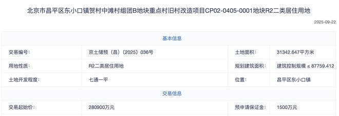 北京将于9月22日进入沉Xu di,即Dongxiaokou镇的0405-0001情节,在预先申请的列表中,Changping是“机载”。起价为280.9亿元人民币,相当于32,000元/m2的地板价格。预订的收据时间是从2025年10月21日的17:00 pm。这片土地不在本月初发布的土地供应列表的第七轮,在列表的第五轮旋转中,有两个02和05个地块,当时没有激活。目前,预启用过程突然进入。我不知道哪些房地产公司打算重新进行变革。 Dongxiaokou 01的地块占地3.13公顷,计划建筑面积为87,700元,地板面积为2.8,高度极限为60米。需要在该地块中建造一个家庭管理室,其中500平方米的上方建筑物尺寸。 Dongxiaokou情节距离Haidian和Chaoyang旁边的北第五环路3公里。它可以占据Xierqi和Huchang村的Internet Upstarts溢出的需求,并将享受东方Wangjing商业区的股息。 Metro 13B建筑材料东站的构建线路线距离距地块约1公里,并计划在明年开放。向西五站直接到达Xierqi;三人在量旺林以东停了下来。此外,S7 Northeast Ring Road于今年6月开始建设,减少了到中国贸易中央商务区的转移。有Xisanqi Wanxianghaui,Dongxiaokou City休闲公园,Dongxiaokou Forest Park,Hexin Park和其他逾越节等设施,设有完整的生活设施。计划中的北京第101中学也在该地块附近,有一所12年的学校,充满了该地区的高质量教育资源。在过去的五年中,该行业没有增加新的供应。当列表的第五轮旋转发布时,Dongxiaokou的情节非常受欢迎,此前被称为“ Changping South地区的最后一个难题”。在Changping中,这片土地的位置可以挑战Zhu Xinzhuang。休伊(Huitian)地区的人口较高,但它们都是旧平台,新法规很少,并且在第五圈道之外也有购买限制的爱好者,进入市场的时间是正确的。