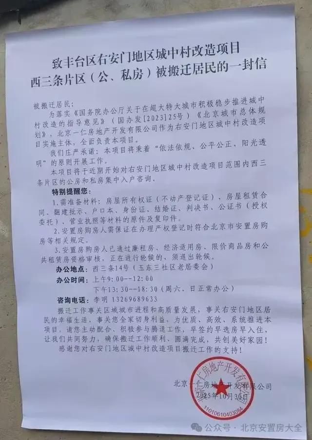 邻居们好~今年年初,丰台区在“两会”中宣布,到2025年,全镇两个新村改造项目,分别在社石村片区和右安门片区,共改造1644户。最近我们一直在分享有关石村地区的新闻。空置政策咨询已启动,将于11月4日结束。右安门片区城中村改造项目西三条片区的搬迁工作也即将启动,一封搬迁居民的来信也已贴出。该项目将于近期启动集中上门咨询。该区平房区始建于1958年,总面积约6000平方米。房屋管理中心直接管理的公租房(院)98套,宅基地(院)12套。由于该地区房屋老旧,居民投诉较多公共秩序、出行安全、环境清洁等问题,亟待改变。该帖子的发布表明该项目已得到妥善推进。编辑也会随时支付项目进度。